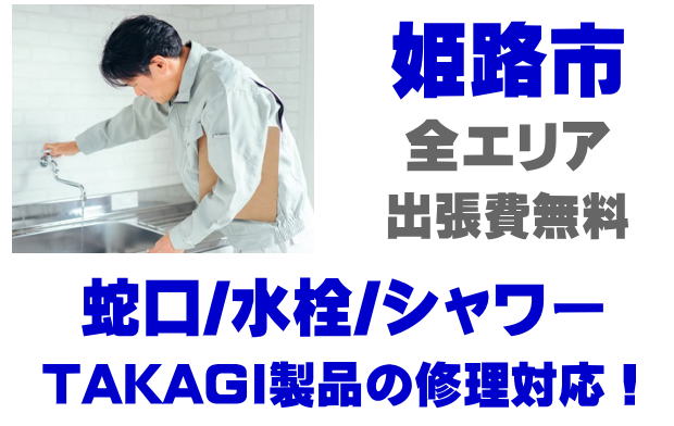 姫路市で水栓メーカーTAKAGIの修理業者をお探しなら当社までお気軽にお問い合わせください。蛇口の水漏れ、シャワーの故障などタカギ製に関するトラブルなら何でもご相談ください。
