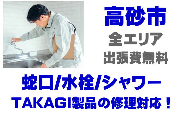 高砂市で水栓メーカーTAKAGIの修理業者をお探しなら当社までお気軽にお問い合わせください。蛇口の水漏れ、シャワーの故障などタカギ製に関するトラブルなら何でもご相談ください。